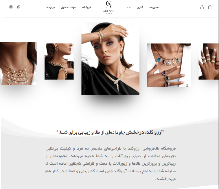 سایت فروش طلا و جواهرات آرزو گلد گالری که معرفی شده از طرف سایت قبلی طلا که قانونی گلد بود و رضایت خیلی بالای از کیفیت کار داشتن و آرزو گلد را به ما معرفی کردن و این پروژه در شرکت Piwebz به سرانجام رسیده است.